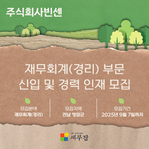 주식회사빈센 - 빈센 재무회계(경리) 부문 신입 및 경력 인재 모집 | 세무잡