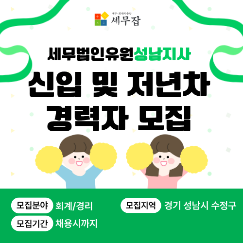 | [세무잡] 세무법인태림중앙지점 - 신규,경력사원 모집 (0) | 2025.09.17 |